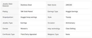 Be the first to review “18K Gold Plated Stainless Steel Cubic Zircon Huggie Hoop Earrings for Women Trendy Silver Gold Colored CZ Zircon Hoop Huggie Earrings Jewelry Gifts for Women Girls Anniversary Wedding Earrings Gifts”