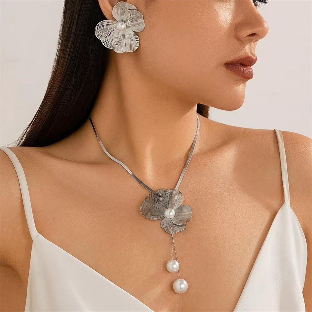 New Bridal Jewelry For Wedding Party Perfect Gift Fashion Silver Gold Plated Flower Pendant Necklace Stud Earrings Jewelry Set for Women Party Bridal Wedding Jewelry Gift